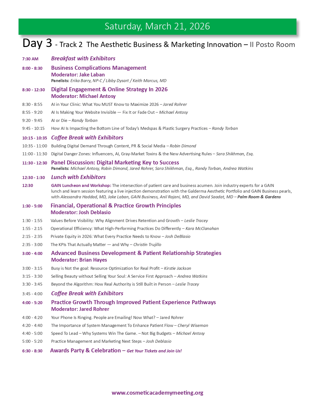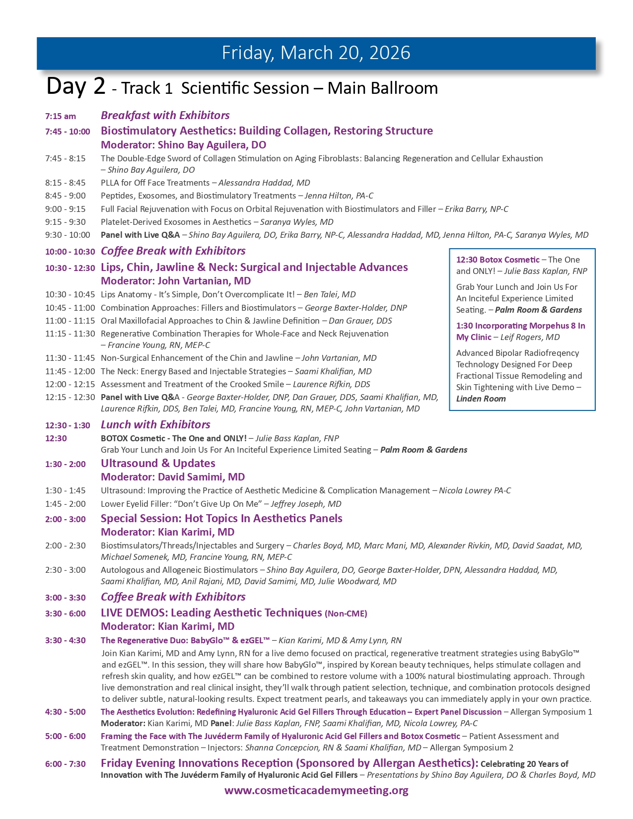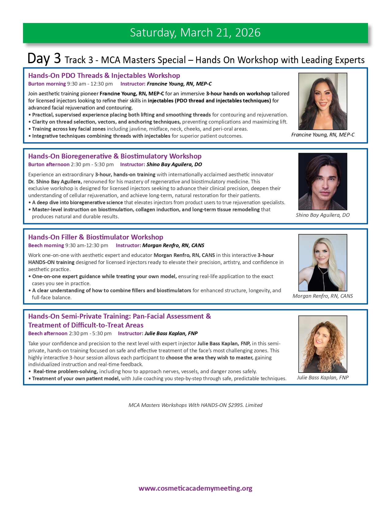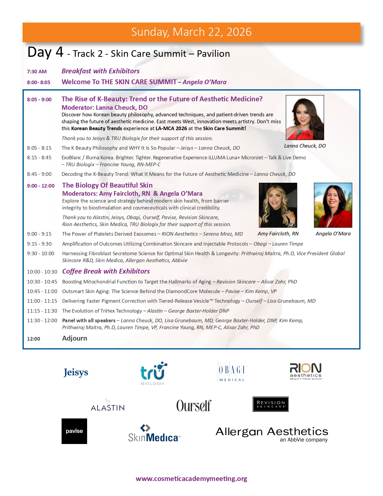Join us for the highly anticipated LA-MCA 2026 Ninth (9th) Annual Aesthetic Meeting to be held March 19-22, 2026. We are proud to present an exceptional lineup of events designed to elevate your expertise and knowledge in medical aesthetics. With 4 days of didactic sessions, MCA Masters Workshops, a Practice Business & Marketing Track, Live Immersion Observation Clinic, the newly appointed Vital Age Summit and the Skin Care Summit, along with the much sought after MCA Signature Hands-On Cadaver Workshop featuring Injectables, Fillers, Threads and Ultrasound, the 2026 meeting provides a unique opportunity for you to learn from the leading experts in various aesthetic medical specialties. We invite you to delve into advanced techniques, cutting-edge procedures, and innovative approaches that will refine your skills, broaden your horizons and expland your practice to new heights. Our esteemed faculty comprises world-class professionals and thought leaders, ensuring you receive the highest level of education and training from the brightest minds in medical aesthetics. Be part of this extraordinary event and unlock new possibilities for success as you move forth in your aesthetics journey. Register now and secure your place at the forefront of innovation and excellence while space is still available. This meeting will sell out.